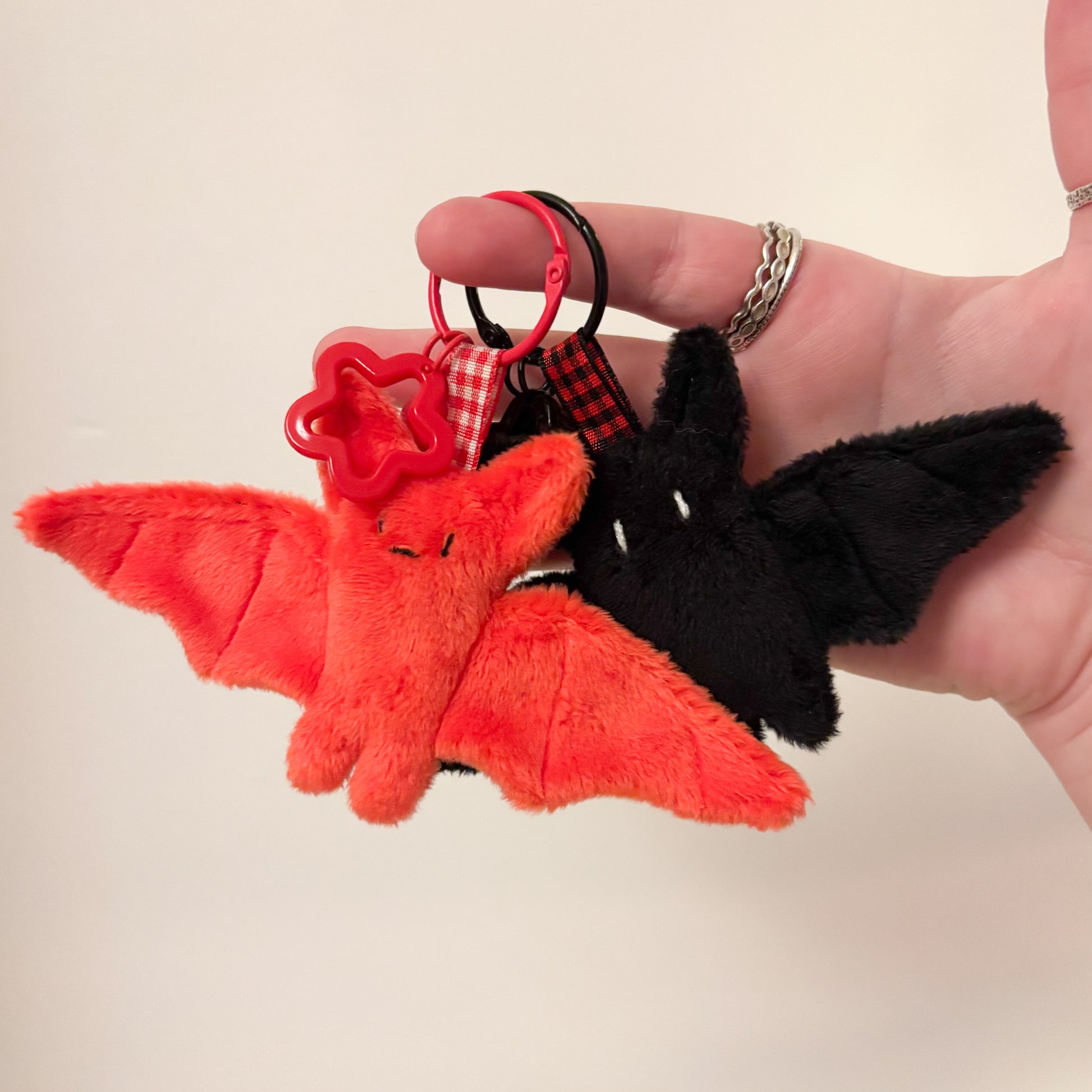 Made using Cuddle Plush fabric to make them extra snuggly and fluffy. The bat keyrings are filled with mochi stuffing. They are finished with a metal keyring hook and 2 charms that can be removed if you wish.